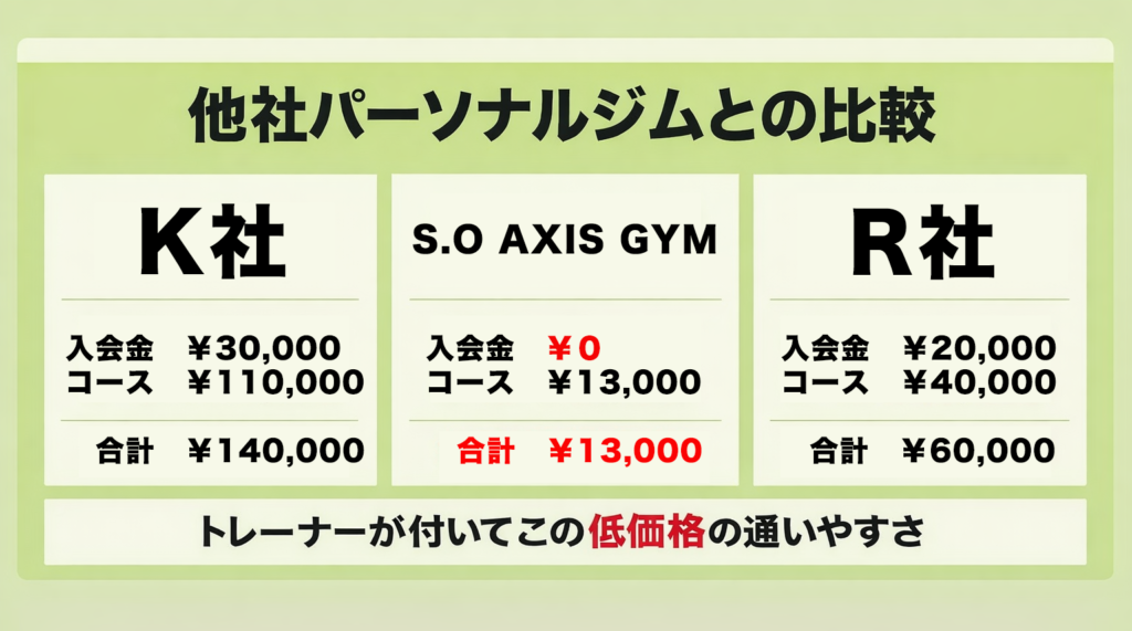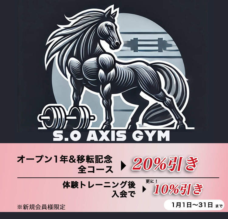 S.O AXIS GYMでは気軽に通って頂けるように他社と比べて圧倒的低価格+入会金無料